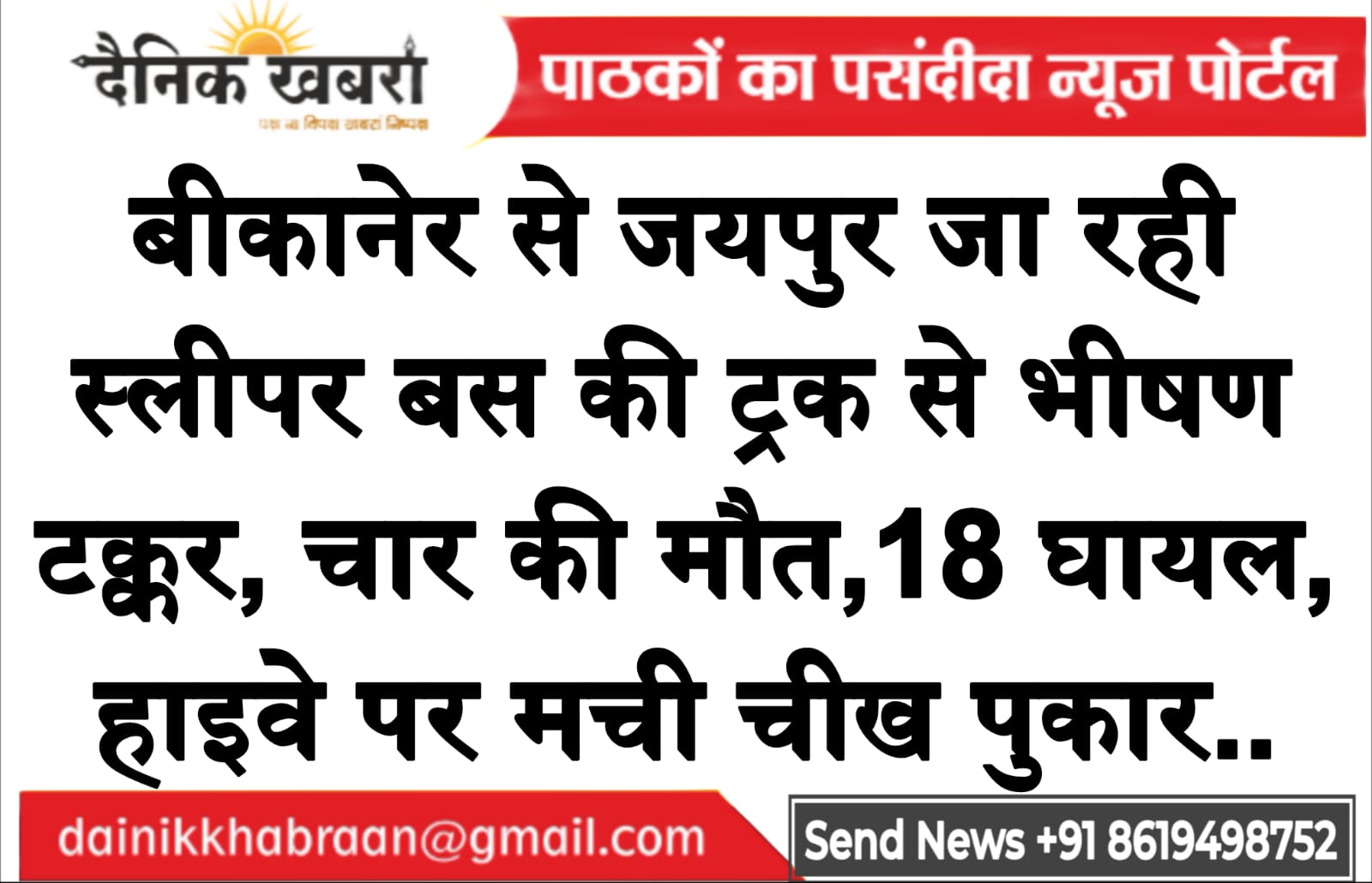 बीकानेर से जयपुर जा रही स्लीपर बस की ट्रक से भीषण टक्कर, चार की मौत,18 घायल, हाइवे पर मची चीख पुकार..
